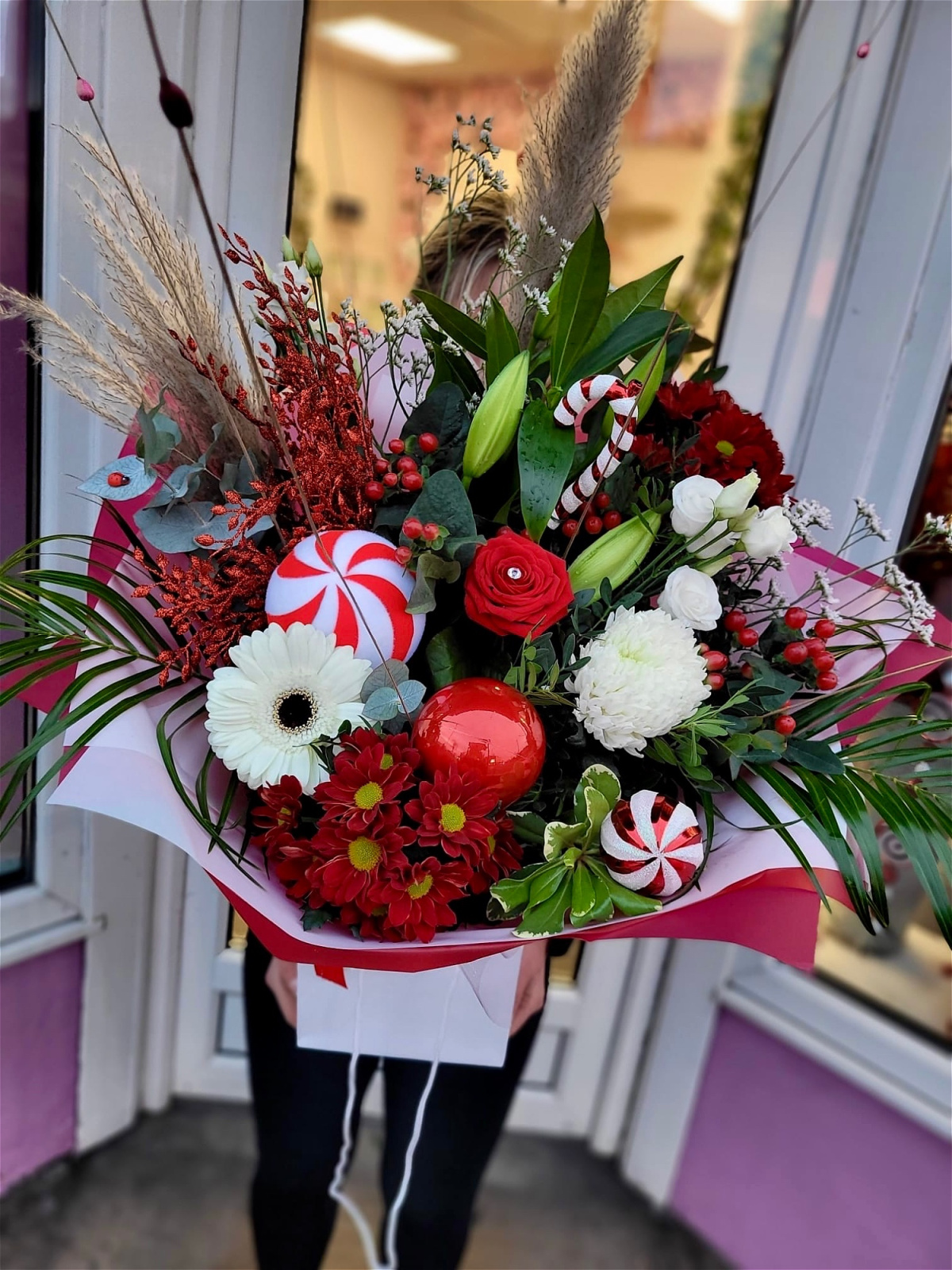 The Candy Cane is a mixture of red and white flowers with touches of candy cane accessories.